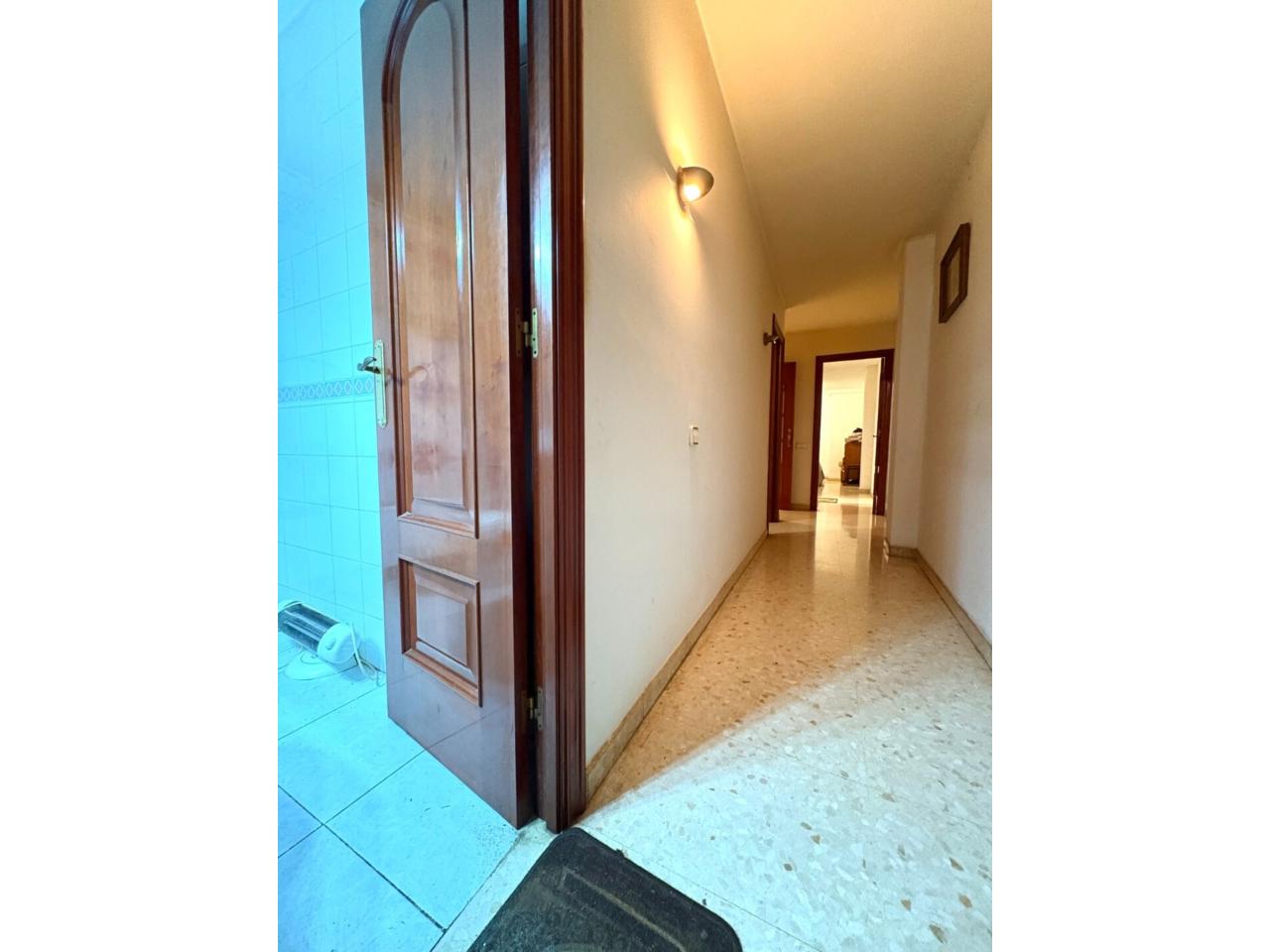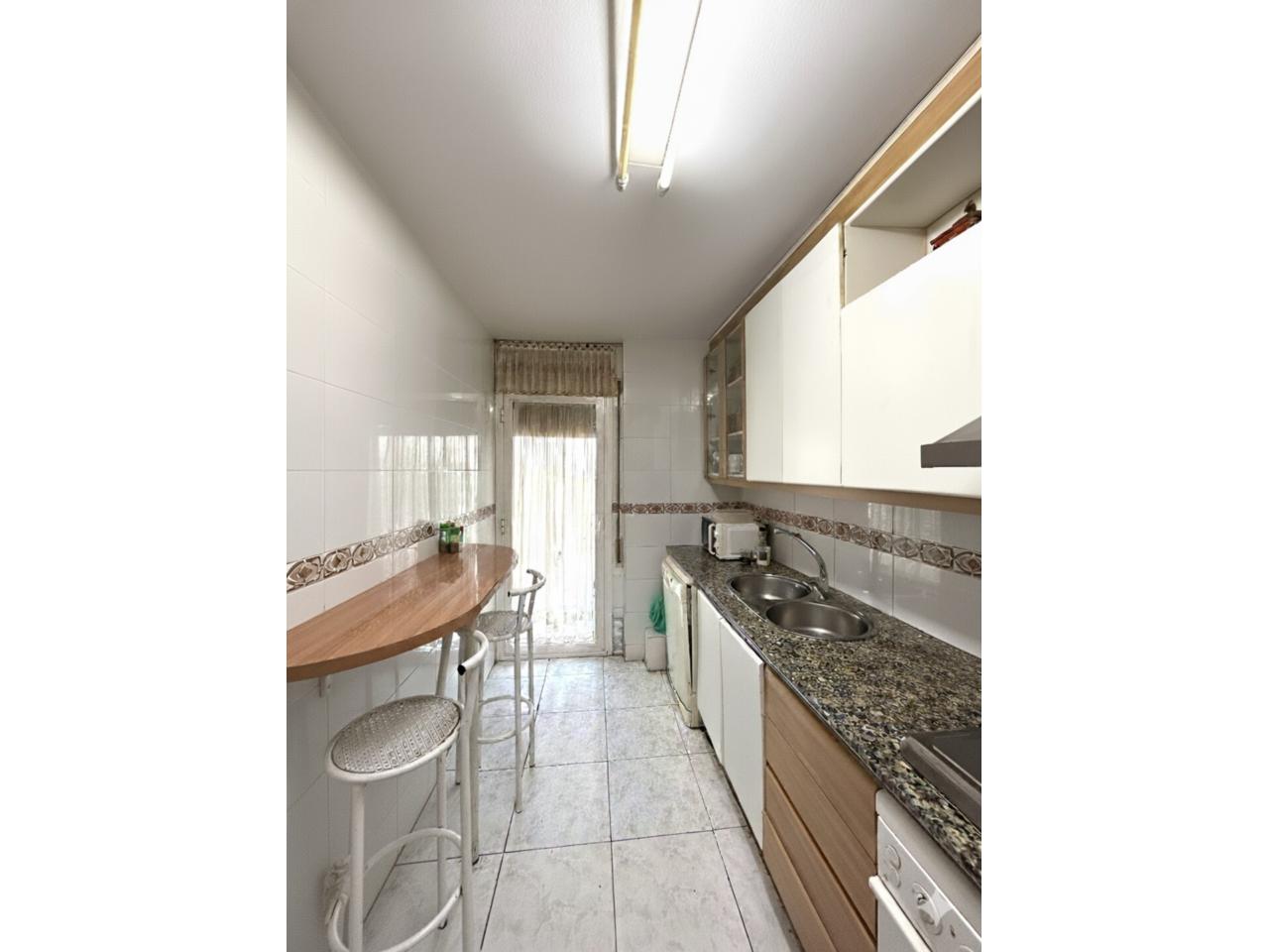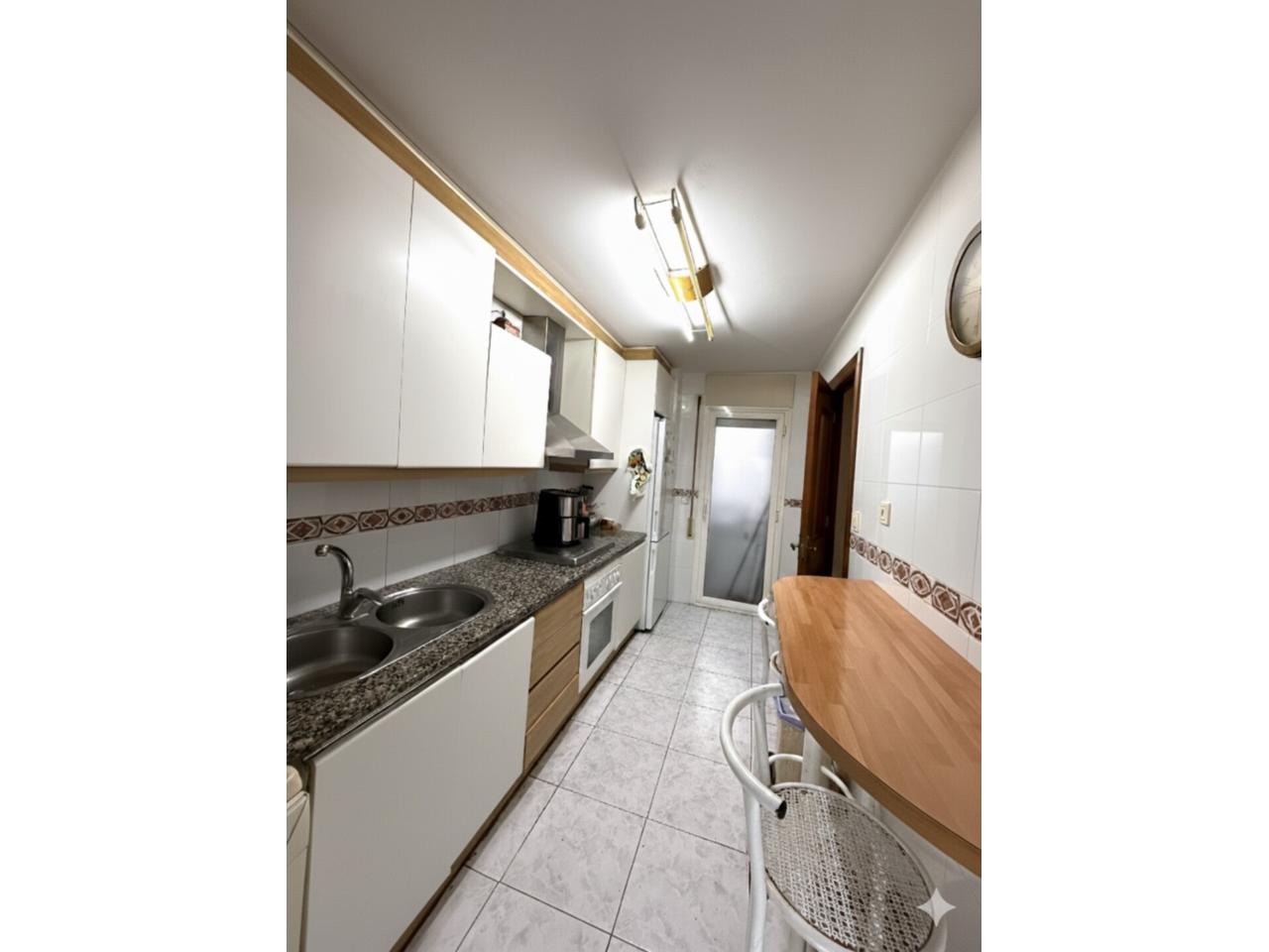 Desde el recibidor accedemos a un espacio acogedor y bien distribuido. Encontramos el dormitorio principal con baño en suite, un segundo dormitorio doble (originalmente dos habitaciones, fácilmente recuperables), un aseo, una amplia cocina independiente con galería y un luminoso salón-comedor con salida directa al balcón, ideal para el día a día.