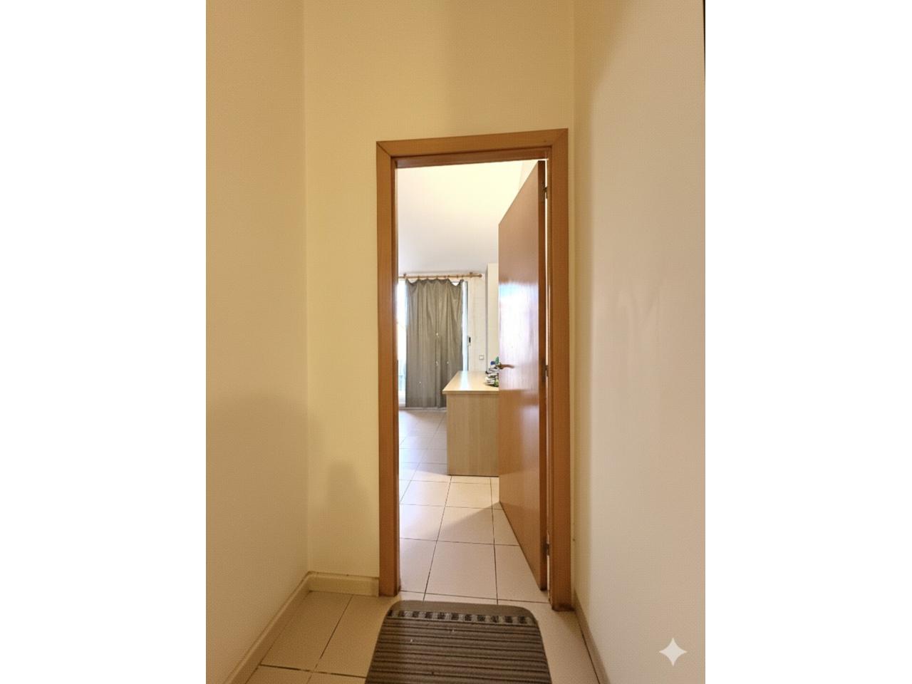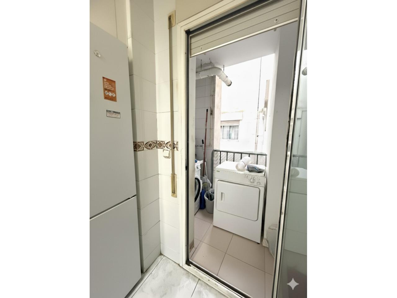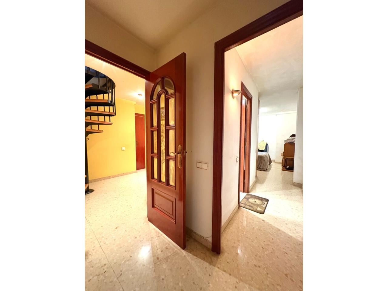 Desde el recibidor accedemos a un espacio acogedor y bien distribuido. Encontramos el dormitorio principal con baño en suite, un segundo dormitorio doble (originalmente dos habitaciones, fácilmente recuperables), un aseo, una amplia cocina independiente con galería y un luminoso salón-comedor con salida directa al balcón, ideal para el día a día.