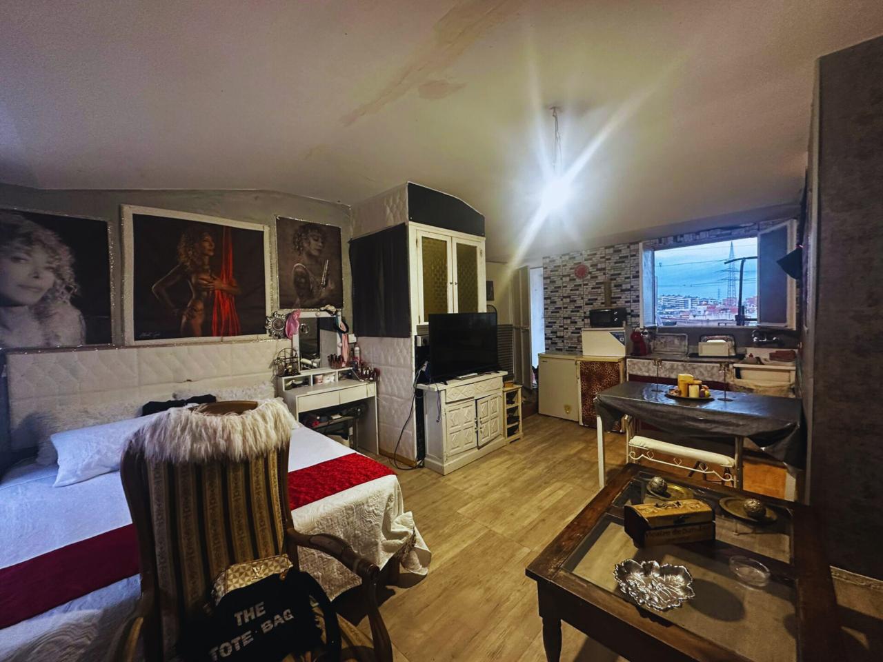 Espacio diáfano con zona de dormitorio, salón y cocina